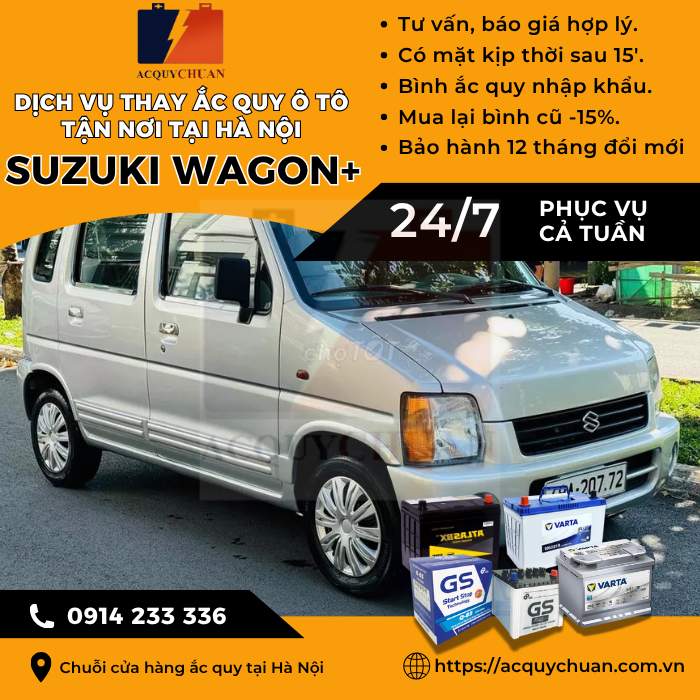 Ắc quy ô tô xe Suzuki Wagon+ – cứu hộ, thay lắp tận nơi tại Hà Nội.